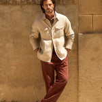 Our summer shirt jacket is inspired by the western part of Apulia, known as the Potenza region. This area reveals a dramatic landscape, distinct from the rest of Apulia. The altitude climbs, and the river meanders, carving out ravines made famous by towns like Matera. Named after the Bradano river, our shirt jacket captures the essence of this remarkable area. The Bradano shirt jacket combines classic Mesciu Gigi minimalism with striking details. Hidden side pockets enhance the impact of the two chest pockets, featuring intricately carved ridges reminiscent of the area’s ravines.