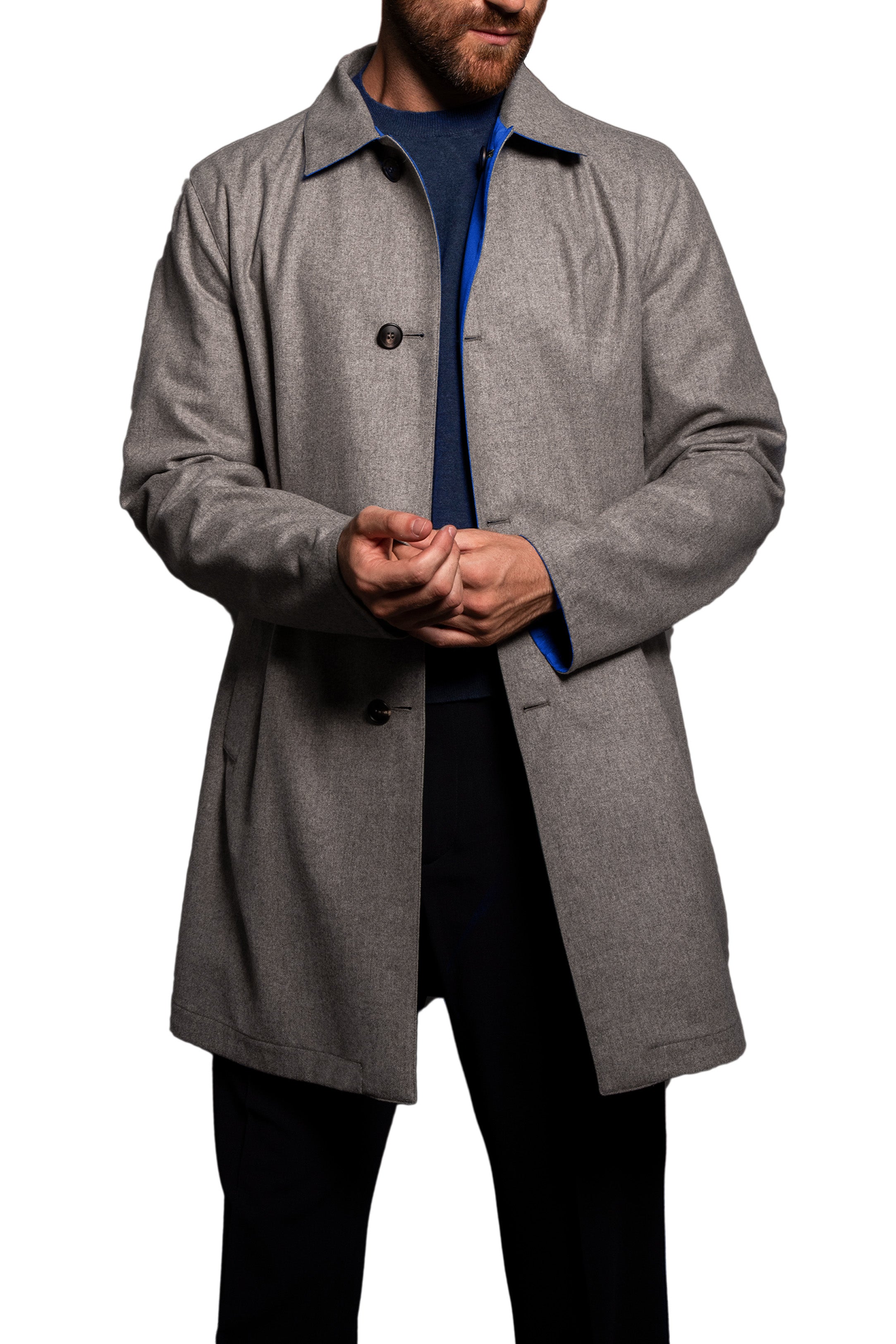 Introducing our signature model, the Lecce coat, a testament to the grandeur of the eponymous city that inspired its creation. This coat stands as a beacon of style and functionality, embodying the essence of our founder, "Mesciu Gigi", and his vision. The Lecce's reversible design offers the versatility of two distinct sides - an exquisite yet durable flannel fabric on one, perfect for everyday wear, and a resilient nylon fabric on the other, providing water-proof features for unpredictable climates. Meticulously crafted with strategic darting, the coat effortlessly molds to the wearer's body, ensuring a tailored fit that exudes sophistication and comfort. A true embodiment of Italian elegance, the Lecce coat pays homage to the city's baroque style and limestone architecture, capturing the spirit of communion where history and tradition converge.