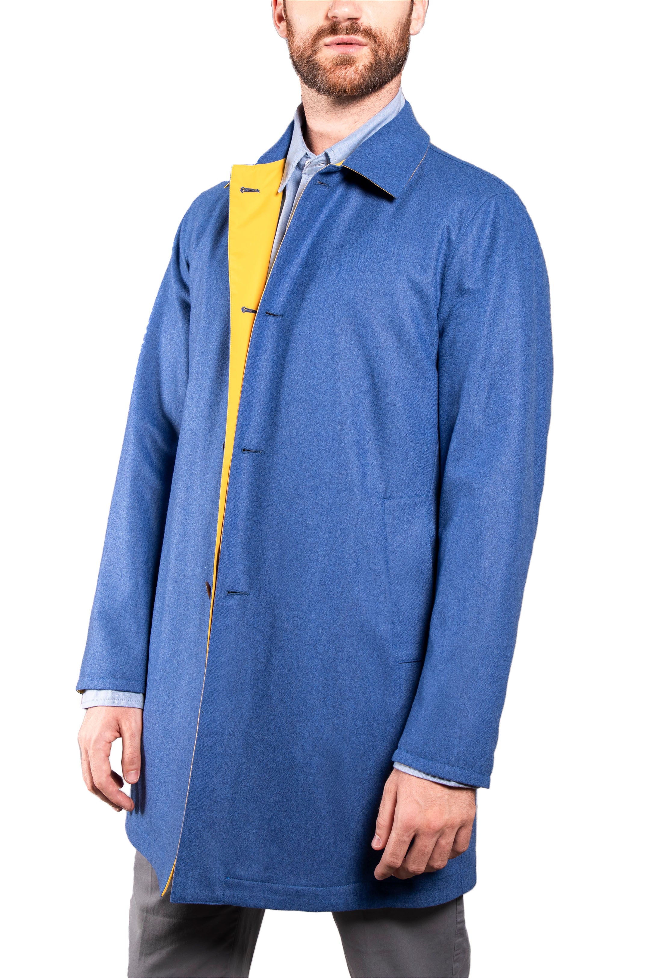 Introducing our signature model, the Lecce coat, a testament to the grandeur of the eponymous city that inspired its creation. This coat stands as a beacon of style and functionality, embodying the essence of our founder, "Mesciu Gigi", and his vision. The Lecce's reversible design offers the versatility of two distinct sides - an exquisite yet durable flannel fabric on one, perfect for everyday wear, and a resilient nylon fabric on the other, providing water-proof features for unpredictable climates. Meticulously crafted with strategic darting, the coat effortlessly molds to the wearer's body, ensuring a tailored fit that exudes sophistication and comfort. A true embodiment of Italian elegance, the Lecce coat pays homage to the city's baroque style and limestone architecture, capturing the spirit of communion where history and tradition converge.